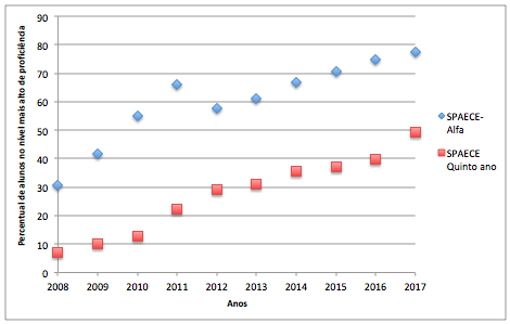 Os resultados de 2017 novamente mostram como o projeto vem sendo bem sucedido no aumento dos índices de alfabetização do estado. Segundo dados divulgados pela Secretaria da Educação do Ceará (SEDUC), enquanto em 2008 somente 30,82% das crianças até o 2o ano estavam alfabetizadas a um nível desejável ao mesmo tempo que 20% não eram alfabetizadas, em menos de 10 anos o cenário mudou completamente. Hoje, o percentual de crianças plenamente alfabetizadas até o fim do 2o ano é de 77,4% contra somente 3,7% de crianças não alfabetizadas, essencialmente transformando o Ceará em uma liderança no país quando se trata de alfabetização.